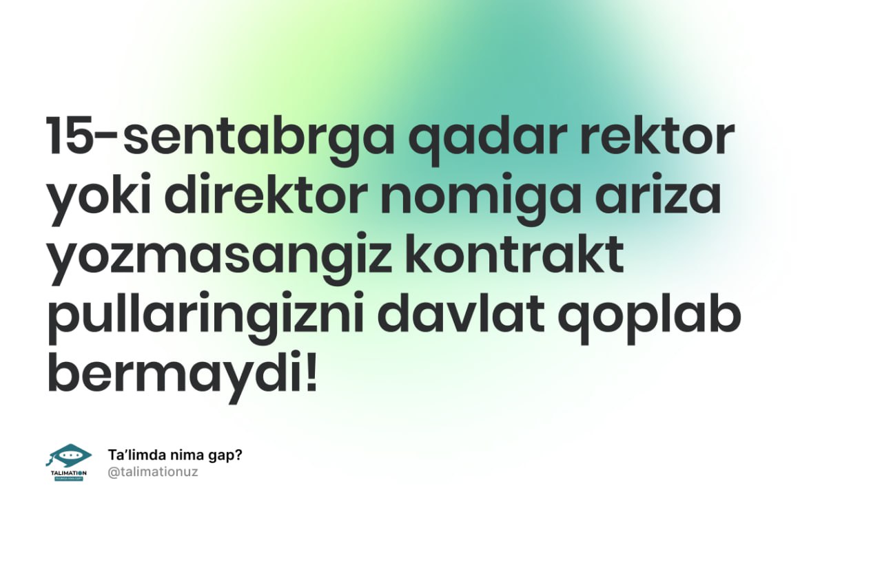 Buning uchun 12 oylik stipendiya pulini ham kontraktga qo‘shib to‘lash kerak.