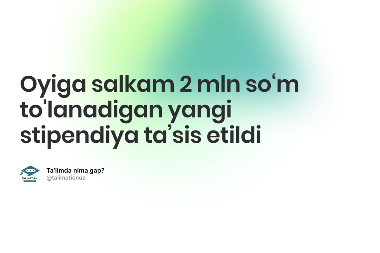 🌳Stipendiya ekologiya, atrof-muhitni muhofaza qilish, o‘rmonchilik, “yashil” iqtisodiyot va gidrometeorologiya va boshqa talab yuqori bo‘lgan yo‘nalishlaridagi eng iqtidorli talabalari uchun mo‘ljallangan.