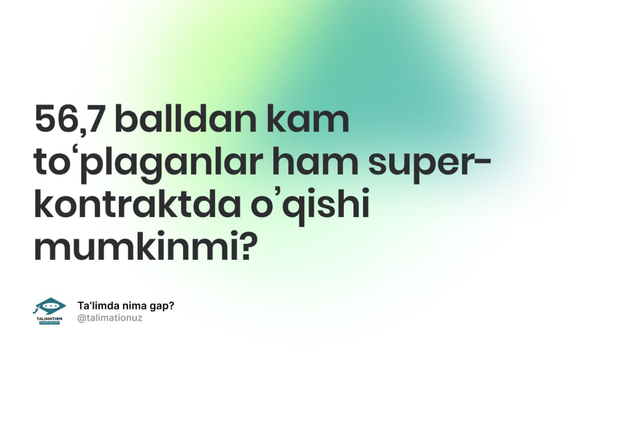 Buni biz shartli ravishda “super-muper kontrakt” deb nomlaganmiz. 56,7 balldan kam to’plaganlar super-kontraktning 2 barobarini to‘lashi kerak.