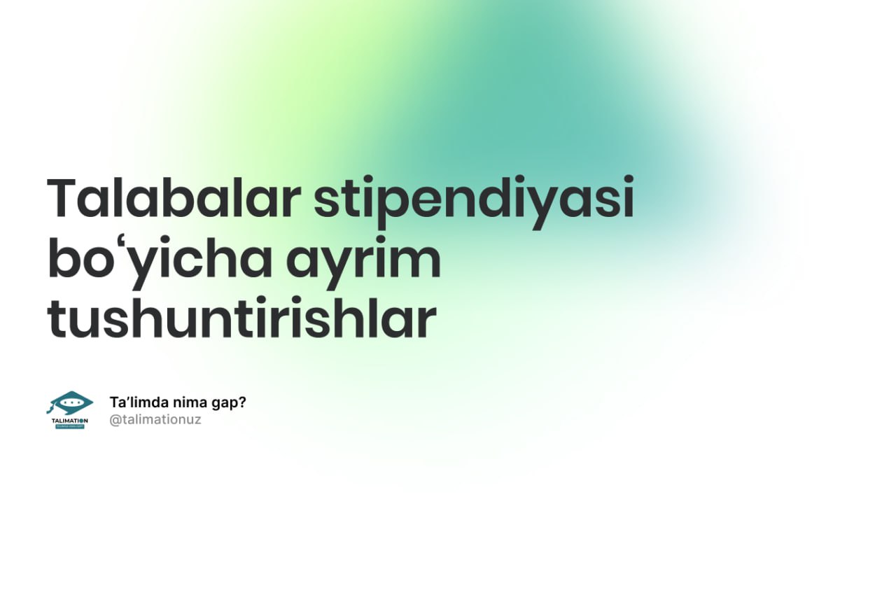 Yangi o‘quv yili boshlangani munosabati bilan barcha talabalar, ayniqsa, 1-kursga kirganlar stipendiya bo‘yicha quyidagi qoidalarni bilib qo‘yishsa zarar qilmaydi: