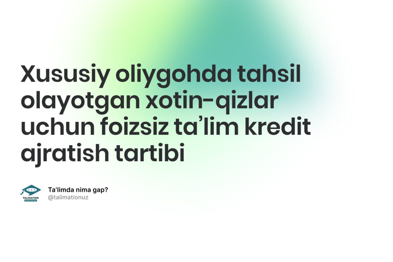 Prezidentning 2022-yil 18-iyuldagi PQ-323-sonli qaroriga koʻra, toʻlov-kontraktda oʻqiyotgan xotin-qizlarga joriy yildan boshlab imtiyozli foizsiz taʼlim krediti beriladigan boʻldi.