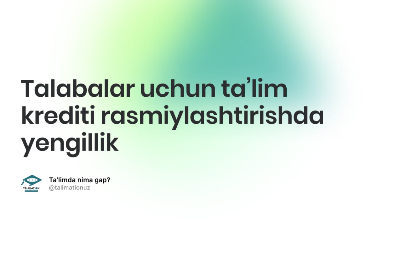 Demak, endi talabalar bemalol to‘lov-shartnomani olgach, banklardan taʼlim krediti olish uchun ariza berishlari mumkin.