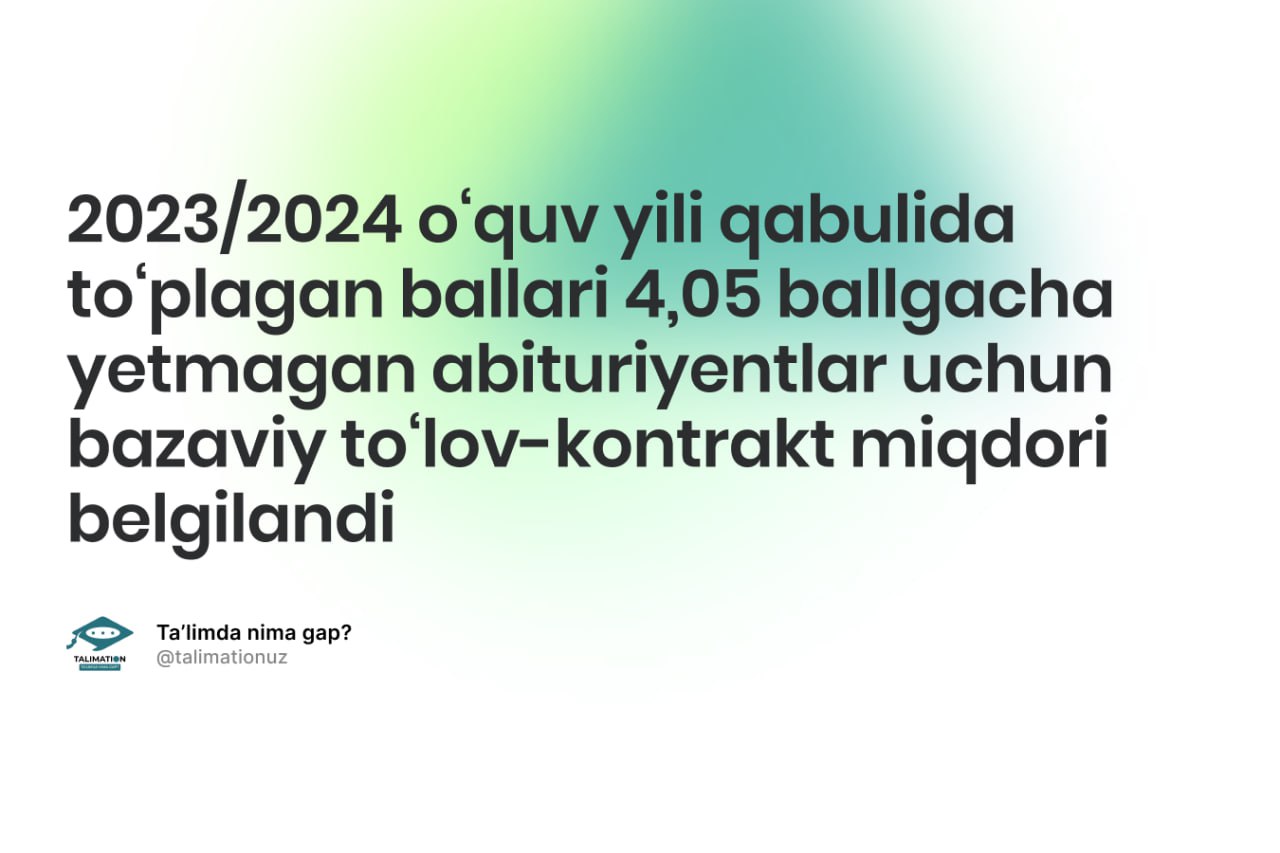 Unga ko‘ra, to‘plagan ballari tasdiqlangan to‘lov-kontrakt bo‘yicha qabul kvotalari chegarasiga: