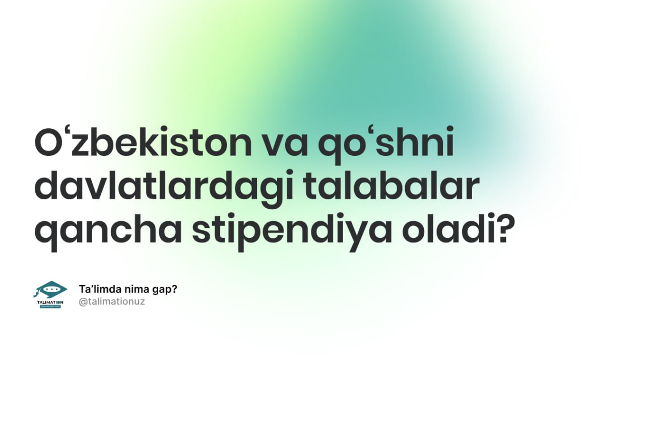 Tojikiston va Qirg'izistonga oid ma'lumotlar asosan 2022 yilga tegishli bo'lsa-da, ochiq ma'lumotlar asosida Qozog'iston talabalari eng yuqori stipendiya oladi, deb xulosa qilish mumkin.