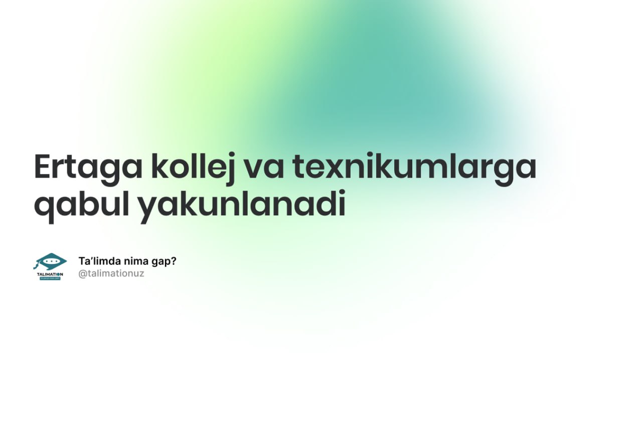 10-sentabr — professional ta’lim muassasalariga abituriyentlarni onlayn ro‘yxatga olishning so‘nggi kuni hisoblanadi.