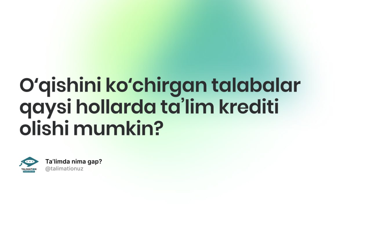Bazaviy (oddiy) toʻlov-kontrakt asosida oʻqishini koʻchirgan boʻlsa, bemalol taʼlim krediti olishi mumkin. Agar tabaqalashtirilgan toʻlov-kontrakt (super-kontrakt) asosida oʻqishini koʻchirgan boʻlsa, unda taʼlim krediti berilmaydi.