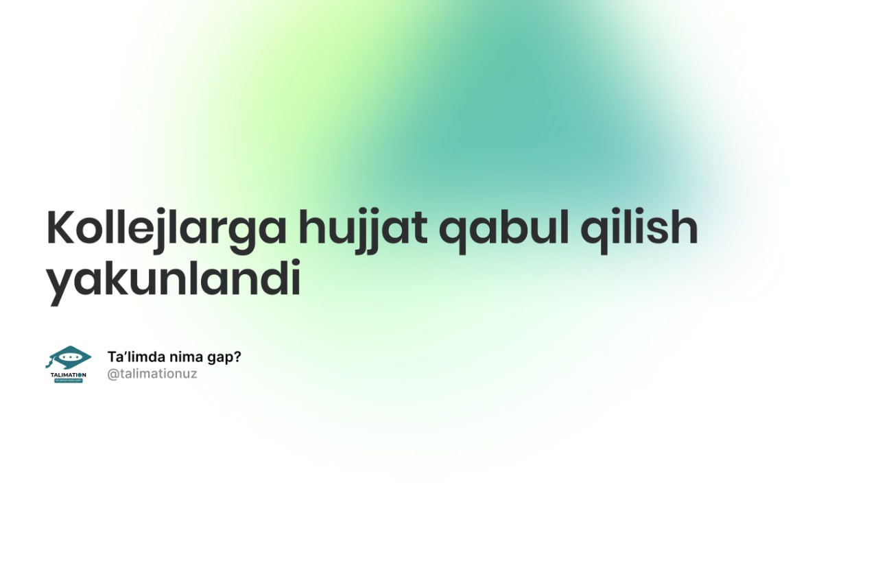 10-sentabr kuni kollejlarga hujjat topshirish yakunlandi. Yakuniy natijaga ko‘ra, my.uzbmb.uz elektron platformasi orqali jami 35 088 nafar abituriyent onlayn ro‘yxatdan o‘tdi.
