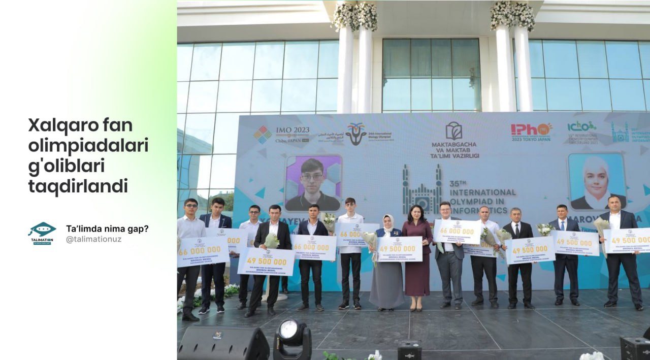 Xalqaro fan olimpiadalarida g'olib bo'lgan o'quvchilarga yaxshigina pul mukofoti beriladi.