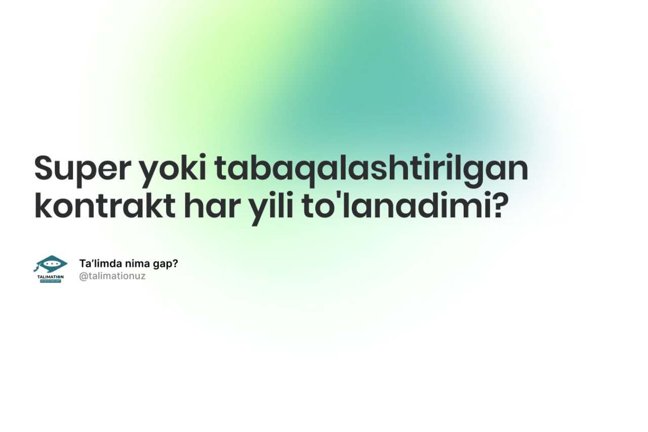 Super yoki tabaqalashtirilgan kontraktni faqat o'qishga kirgan yili bir marta to'lanadi. Keyingi yildan oʻrnatilgan bazaviy toʻlov-kontrakt miqdorini toʻlanadi.