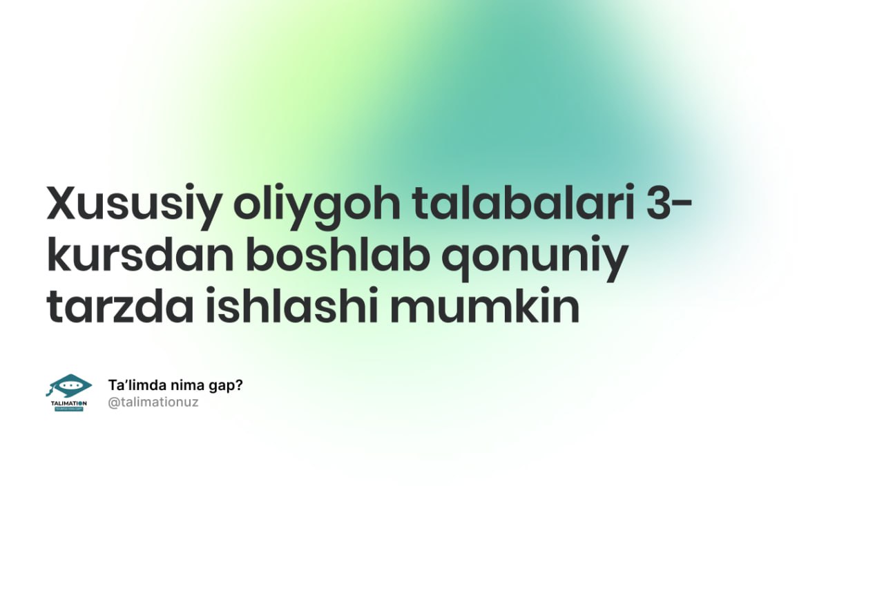 Hukumatning "Taʼlim darajasi yuqori bo‘lmagan maktablarga malakali o‘qituvchi-pedagoglarni jalb qilish chora-tadbirlari to‘g‘risida"gi (15.10.2021 646-son) qaroriga binoan, pedagogika yo‘nalishlarida kunduzgi kechki, sirtqi bo‘limlarining 3-kursida tahsil olayotgan talabalarga maktablarda dars berish huquqi berilgan.