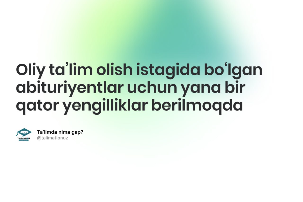 Bundan tashqari, mazkur imtiyoz faqat bakalavr emas, magistratura bosqichida o'qiyotganlarga ham beriladi. Bunda bakalavriatning kunduzgi, sirtqi va kechki shakli, magistraturaning faqat kunduzgi yo'nalishi bo'lishi kerak.