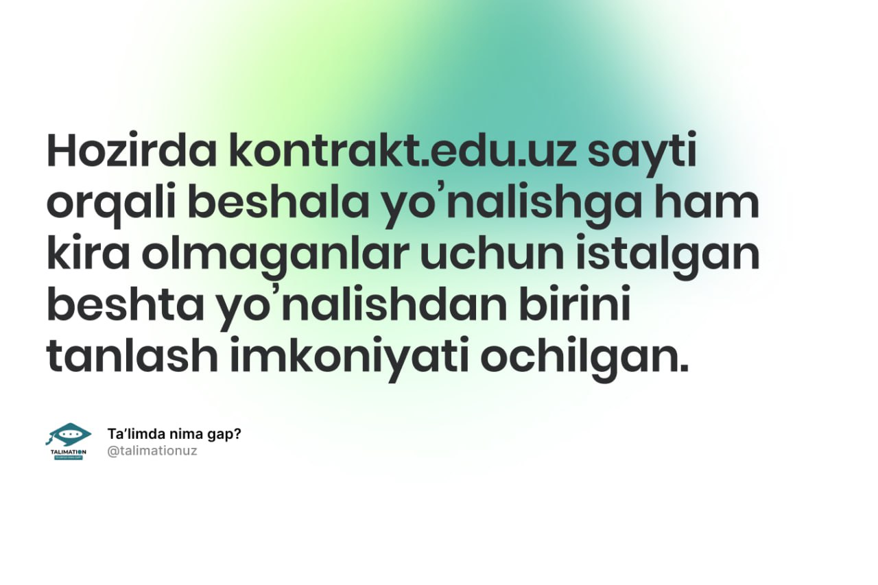 Lekin 2, 3, 4, 5-yo’nalishdan biriga kirganlar uchun birinchi yo’nalishni tanlab, super-kontrakt uchun ariza yuborish imkoni yo’q.
