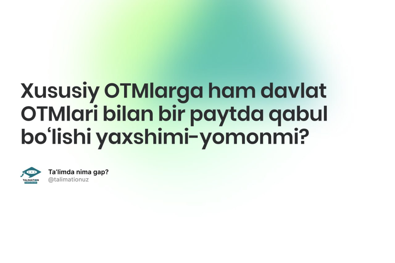 📄 Prezident farmoni bilan, davlat, nodavlat va xorijiy OTMlar hamda ularning filiallari bakalavriati va magistraturasiga qabul bir o‘quv yilida bir marta (iyun — sentyabr oylari oralig‘ida) amalga oshirilishi belgilangan.