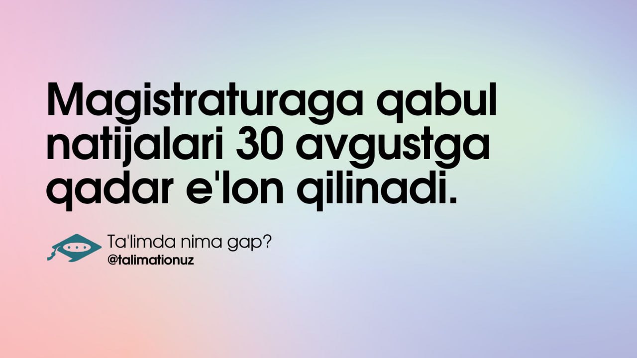 ⚡️Magistraturaga qabul natijalari 30 avgustga qadar e'lon qilinadi.