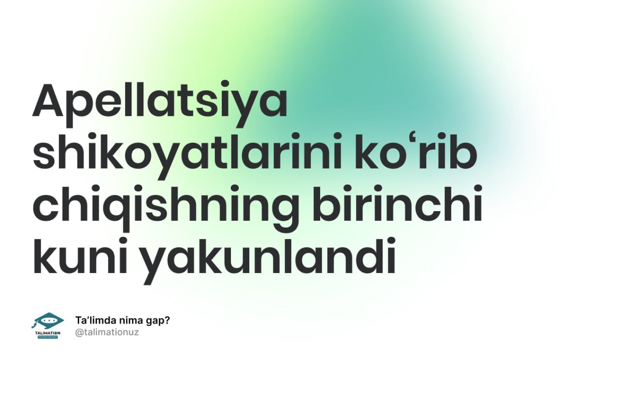 Kechadan (24-avgust) dan test natijalaridan norozi bo‘lib, apellatsiya shikoyati bergan abituriyentlarning murojaatlarini ko‘rib chiqish boshlandi.