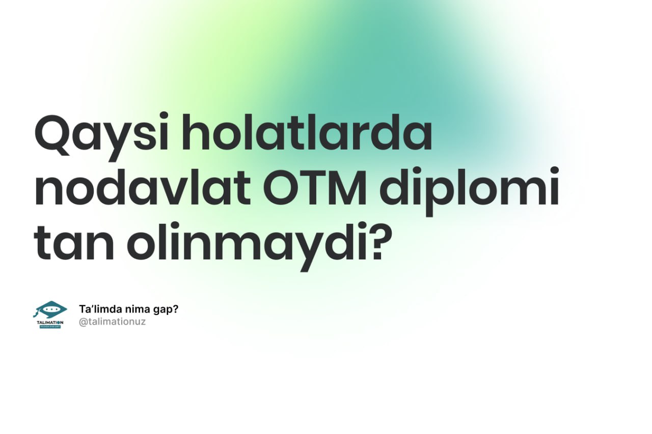 Ya'ni, sirtqi ta'lim shaklida 5 yil (maktabgacha ta'lim yo'nalishidan 4 yil) dan kam tahsil olgan talabalar uchun berilgan diplomlar tan olinmasligi mumkin.