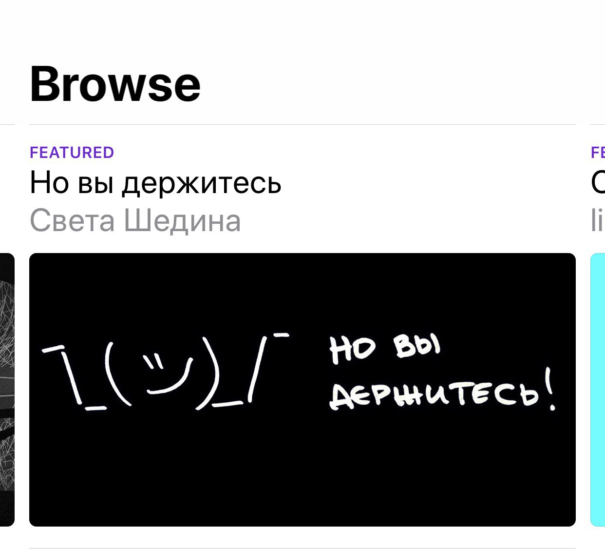 Ваши беcяки и звёзды в «Эппл Подкастах» сыпались не зря. Сегодня «Но вы держитесь» появился в рекомендациях на главной странице. Любим вас! 🖤