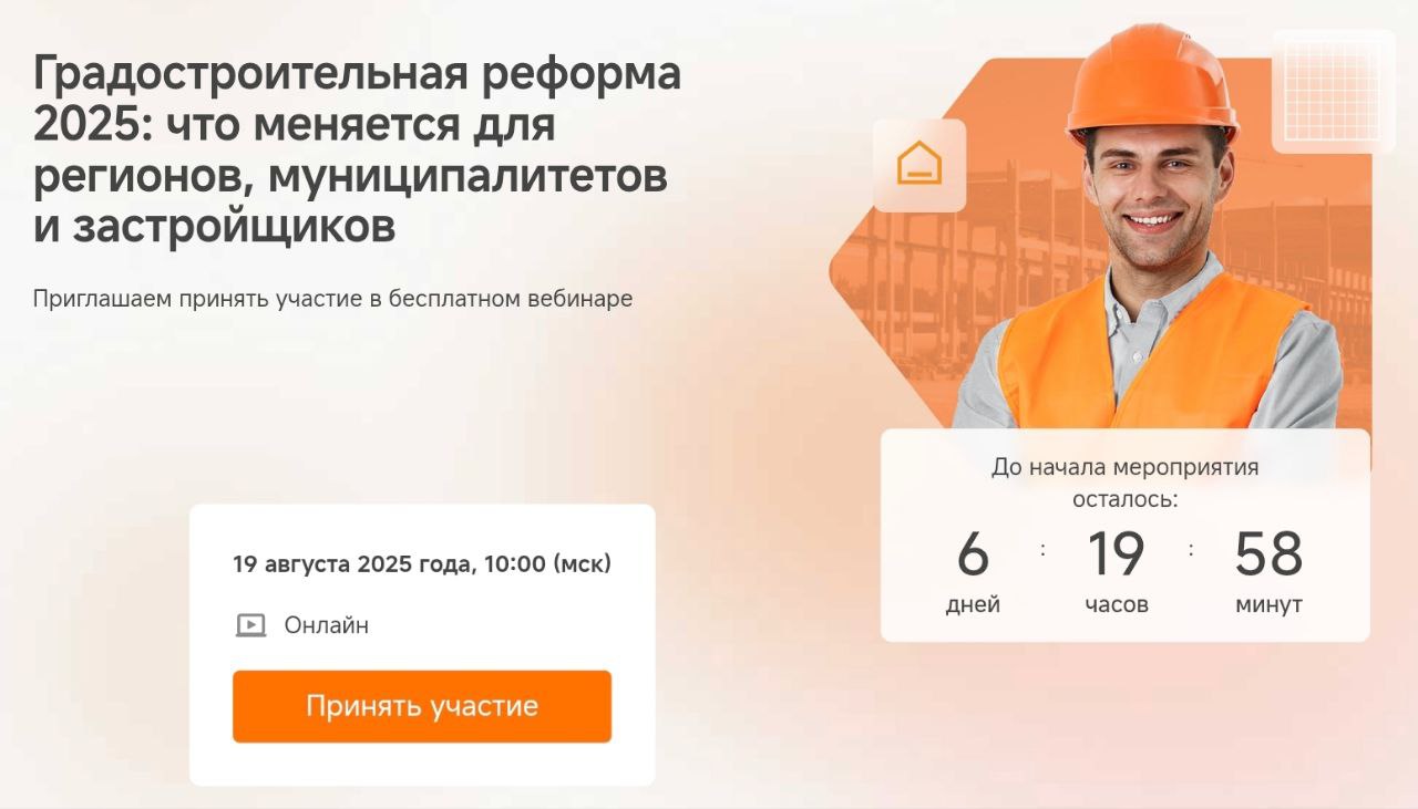 Вебинар "Градостроительная реформа 2025: что меняется для регионов, муниципалитетов и застройщиков"