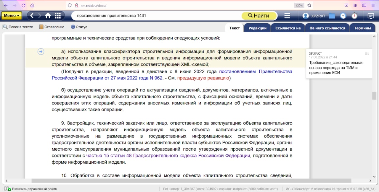 • Техэксперт. Реестр требований: Строительство
