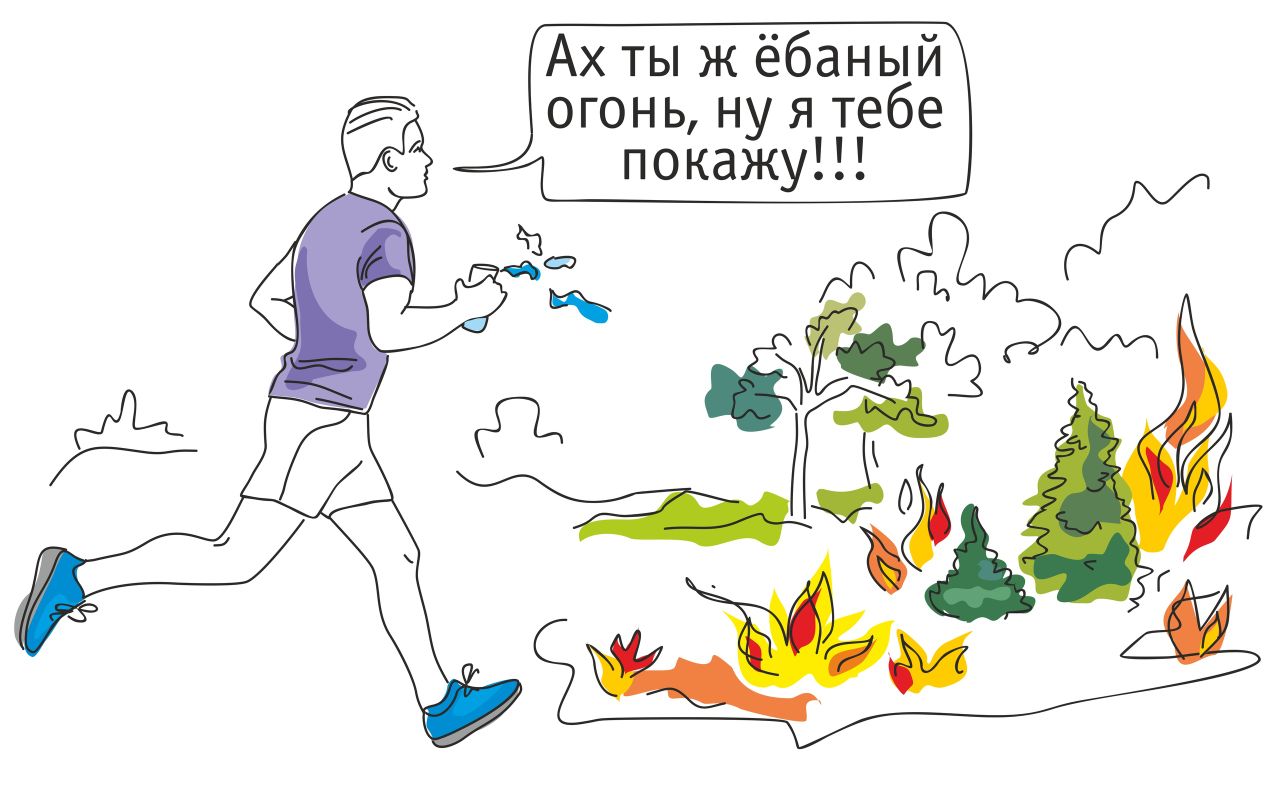 Это он стаканом воды собрался тушить лесной пожар.