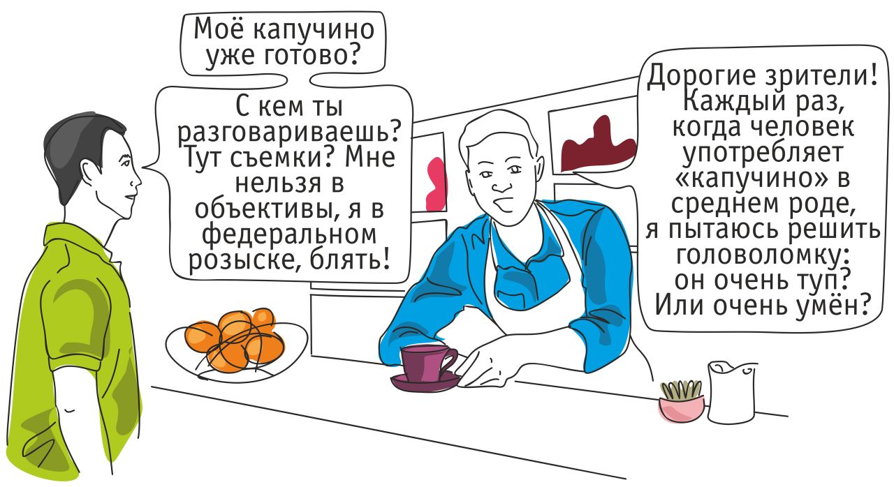 Сегодня поговорим о капучино. Этот кофейный напиток – среднего рода. Да-да! Нужно подходить к бариста и говорить: "Одно капучино, пожалуйста".
