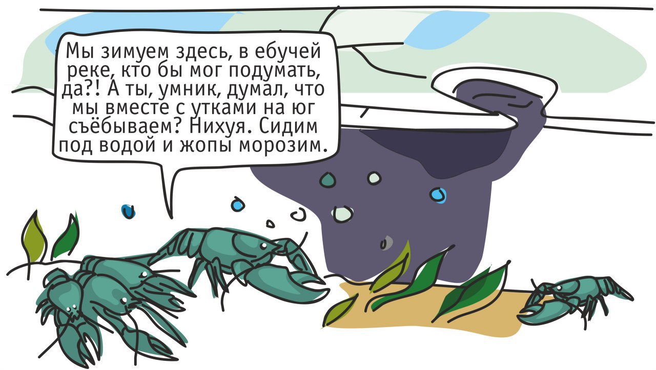 Если помещик хотел зимой отведать раков, то для крестьян это ничего хорошего не сулило. Приходилось в ледяной воде искать зимовку - а на самом деле раки прячутся под корягами и в норах.