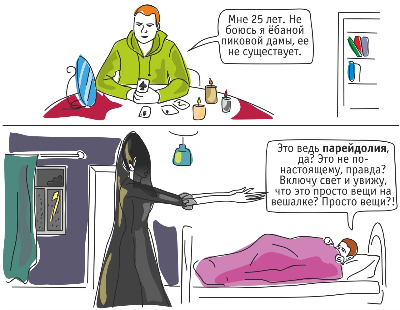 Вот одежда на диване ночью, например.