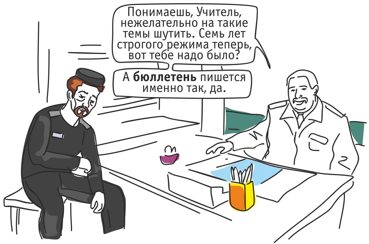 Помню, вбрасываем мы с коллегами бюллетени, а физрук роняет один и говорит: "Будь другом, подними эту бюллетень!". А я отвечаю: "Не стыдно, Егор Семёныч? Бюллетень ведь мужского рода".