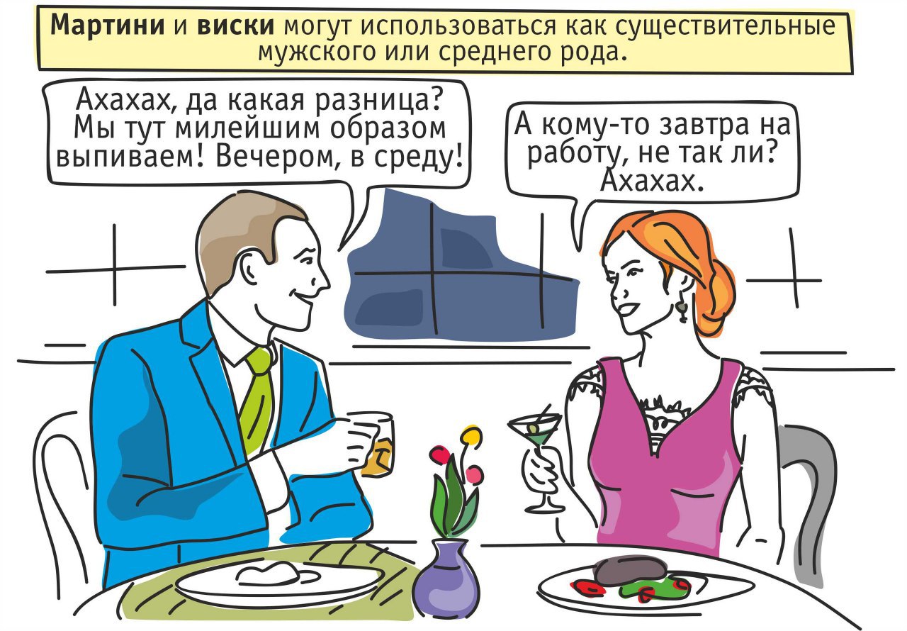 Виски и мартини. Часто ругаются люди из-за рода этих слов, а вы теперь знаете правду.