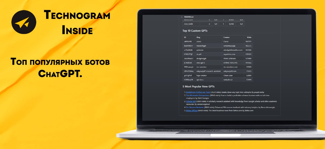 Парень создал репозиторий на GitHub, в котором регулярно обновляет топ популярных ботов ChatGPT. Сейчас в топе находится бот по Canva для дизайнеров.