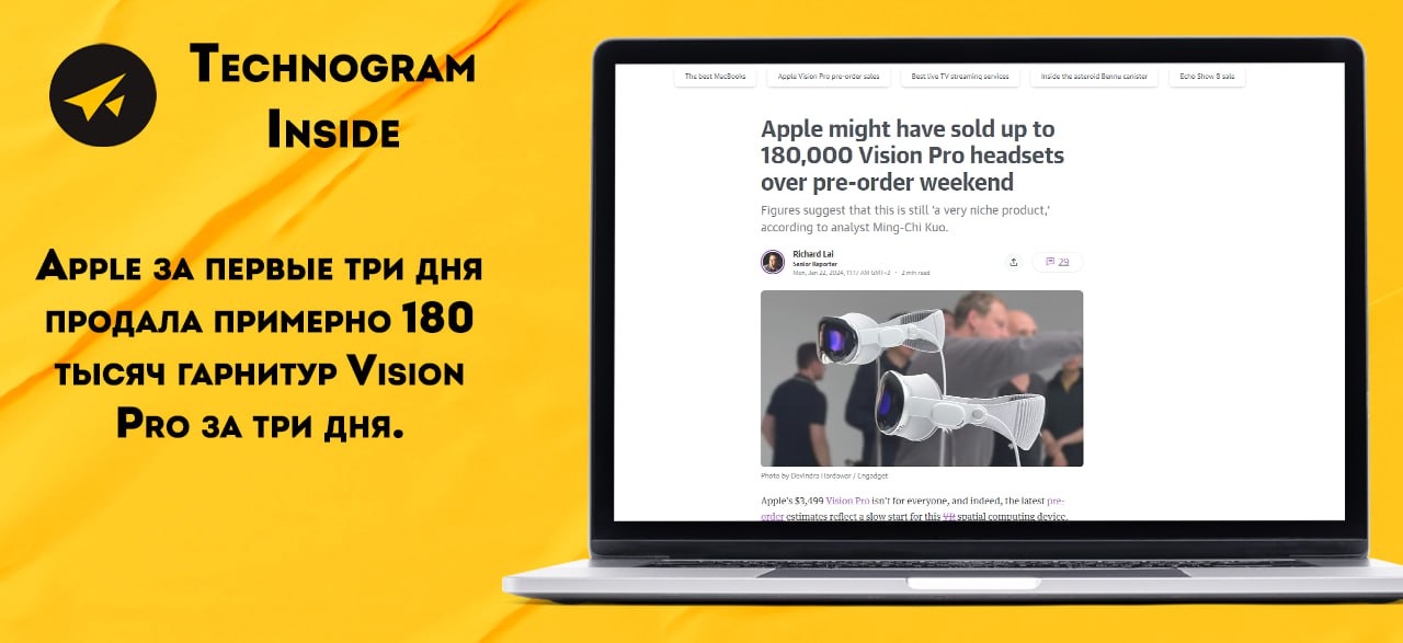 Apple за первые три дня продала примерно 180 тысяч гарнитур Vision Pro за три дня.