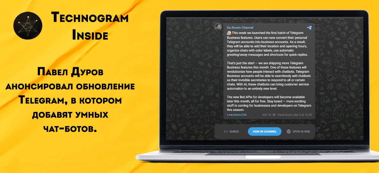 Павел Дуров анонсировал обновление Telegram, в котором добавят умных чат-ботов