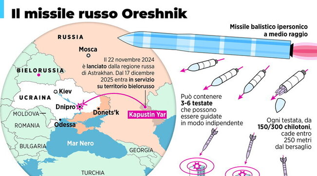 Ucraina, Mosca: "Colpita con il missile ipersonico Oreshnik" Leggi l'articolo completo su Tgcom24