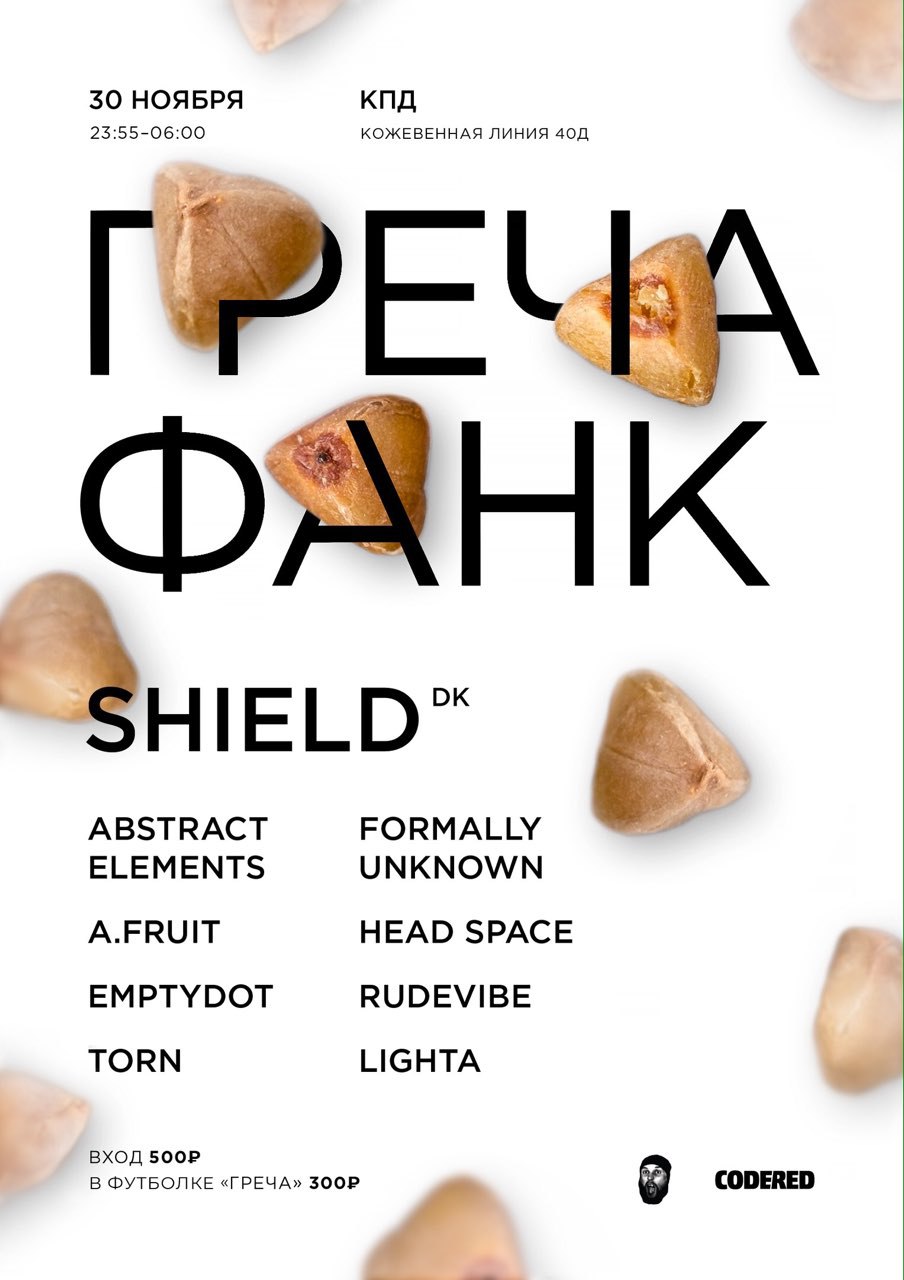 А уже на следующей неделе Гречафанк привозят датского future beats/halftime drum&bass музыканта Shield: https://vk.com/grechashield