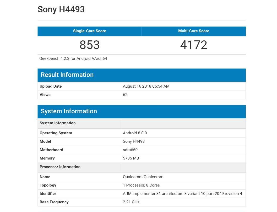 ♨ گوشی میانرده سونی با مدل H4493 در بنچمارک گیکبنچ رویت شد