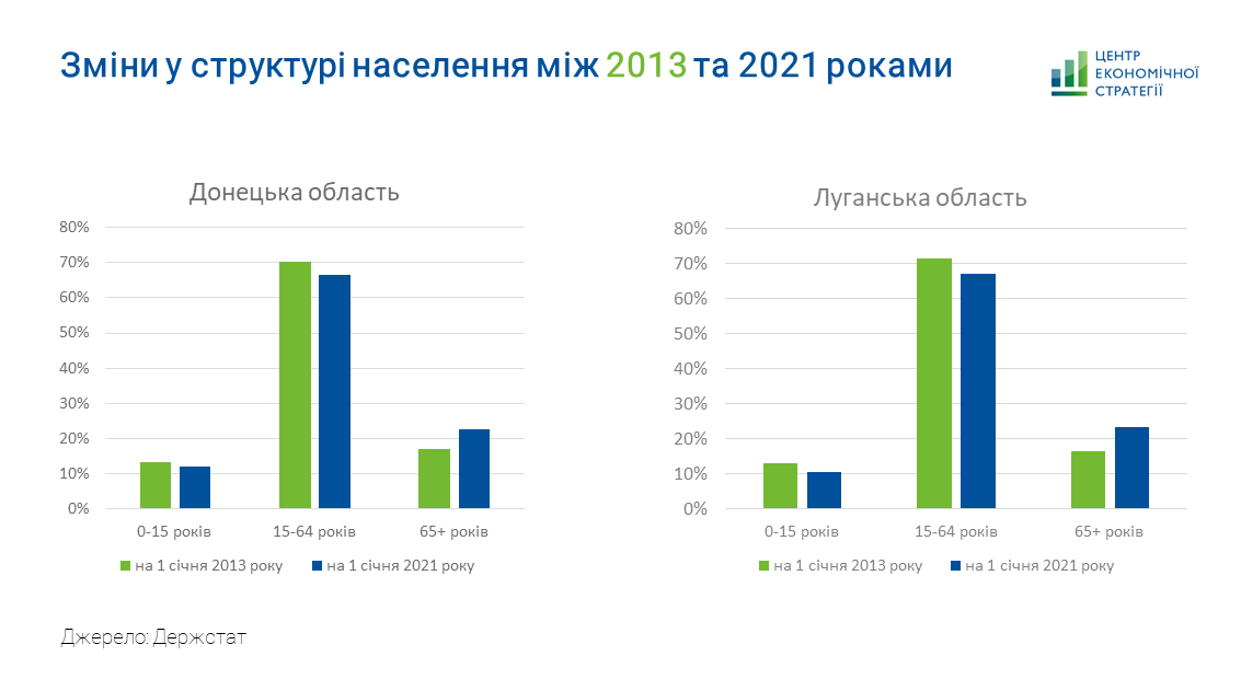 👵🏼В обох областях відбувається рекордне старіння населення, частка дітей до 15 років зменшується, а осіб віком старше 65 років – навпаки, зростає.