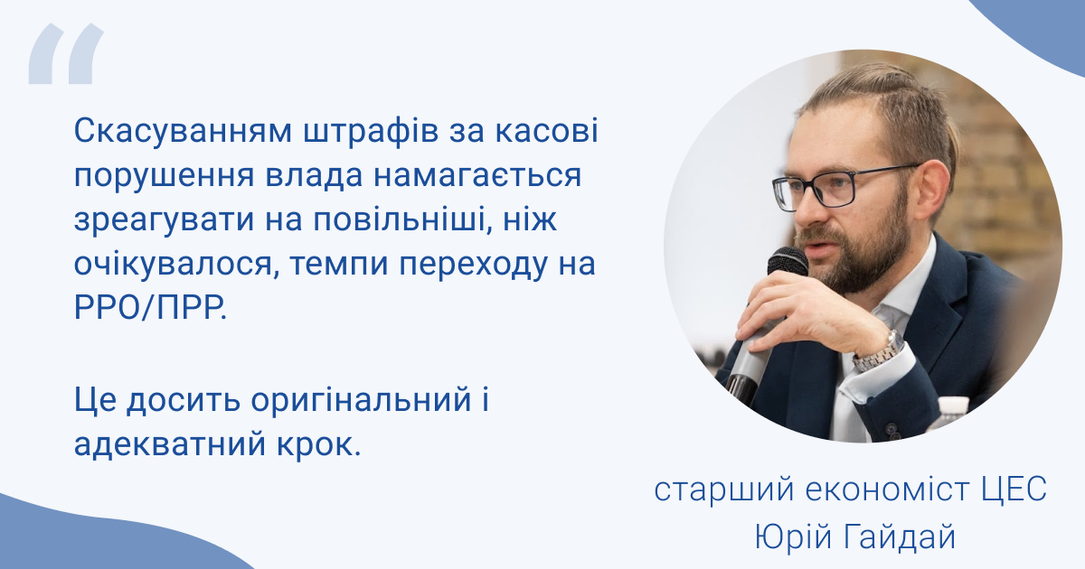 Єдиний ризик полягає в тому, що окремі підприємці будуть працювати "повз касу". Тому що знатимуть, що у разі фіксації порушення та застосування штрафу, цей штраф буде суттєво менший за вартість проданих "повз касу" товарів", - розповідає старший економіст ЦЕС Юрій Гайдай для Інтерфакс-Україна.