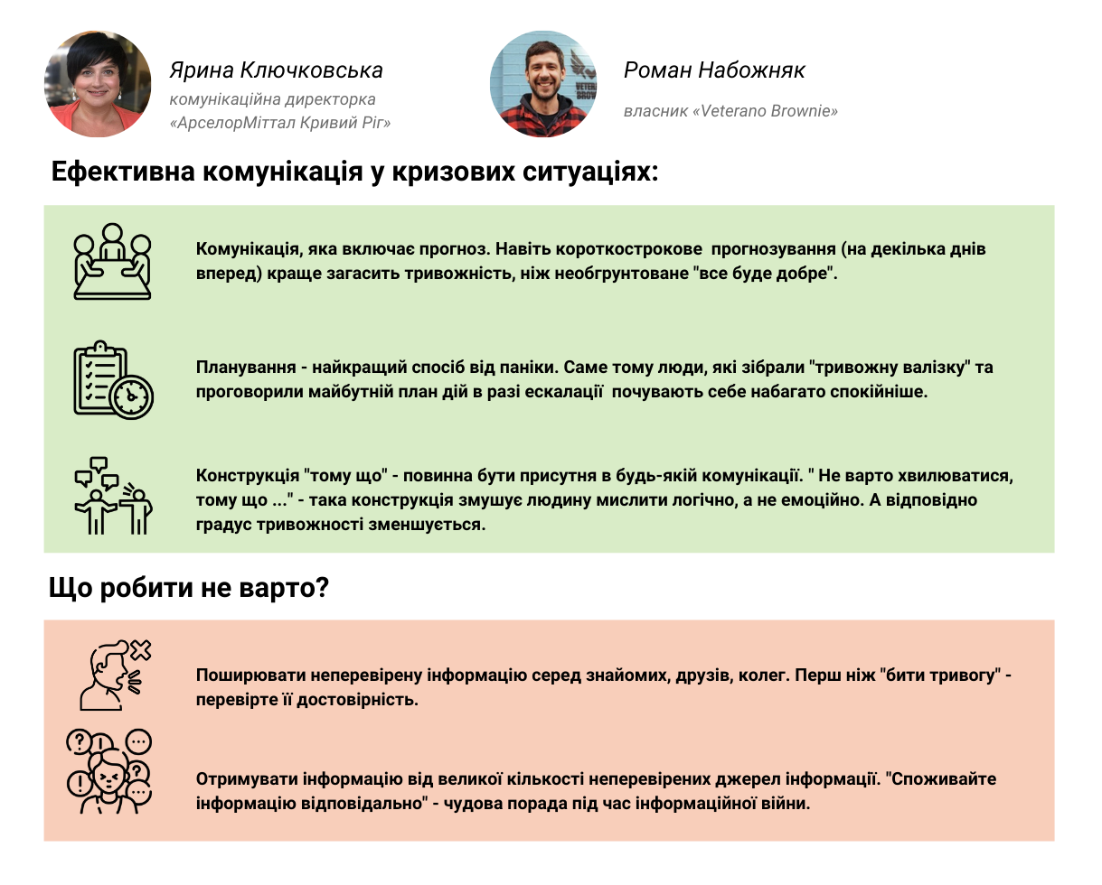 🤝Ми вже послухали подкаст та зібрали основні поради експертів як правильно комунікувати, аби не розповсюджувати паніку (до речі, ці поради універсальні, тому стануть в нагоді не лише підприємцям).
