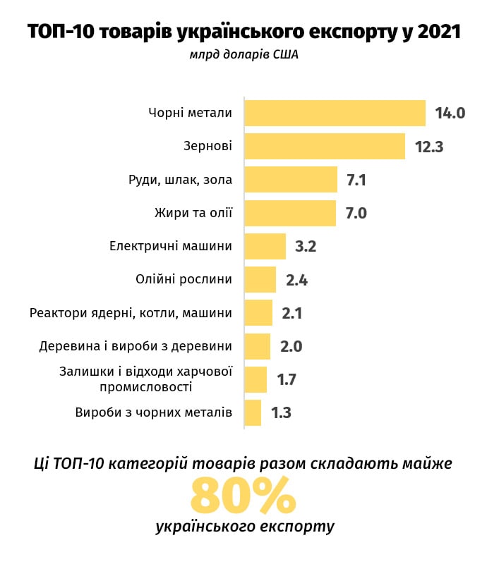 Нагадаємо, що серед основних українських експортних галузей – металургія, сільське господарство та ІТ.
