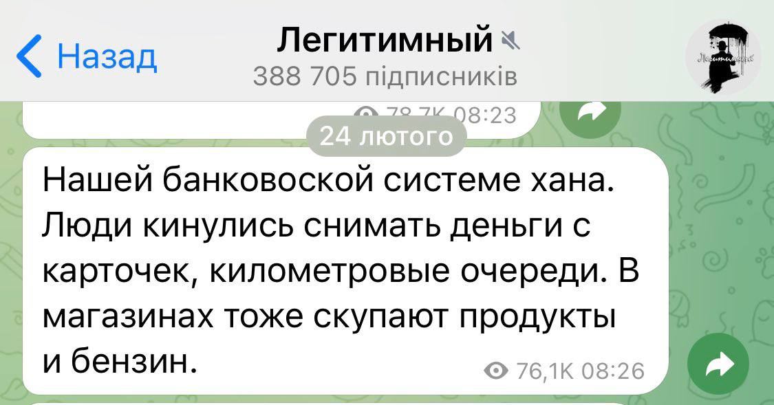 🤡На скріні - допис великого анонімного телеграм-каналу, у ранок 24-го лютого. У перші години вторгнення проросійські ресурси нагнітали зраду, як тільки могли.