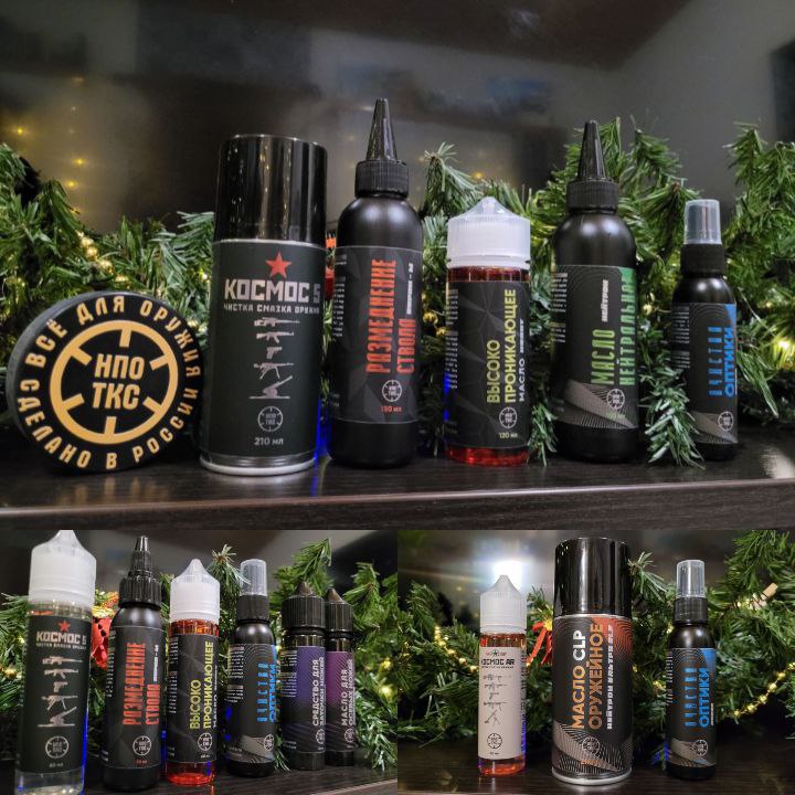 Универсальное средство для чистки и смазки оружия, Сольвент для снятия наката меди из канала ствола, высокопроникающее масло, нейтральное масло и средство для чистки оптики. Бонусом уникальный подарок - хоккейная шайба с фирменным логотипом.