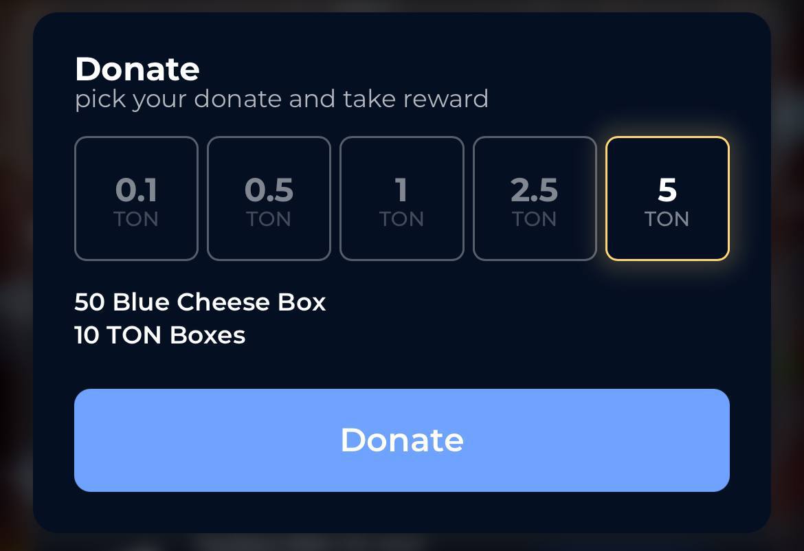 For those who canβt wait to try their luck on TON π and earn lots of cheese, we have a special donation button. Give it a try!