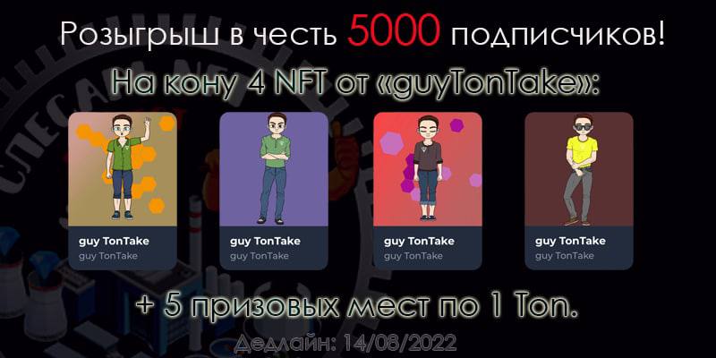 ЕЖЕДНЕВНЫЙ конкурс ДЛЯ ВЛАДЕЛЬЦЕВ NFT guy TonTake и girl TonTake на 5 TON 😎