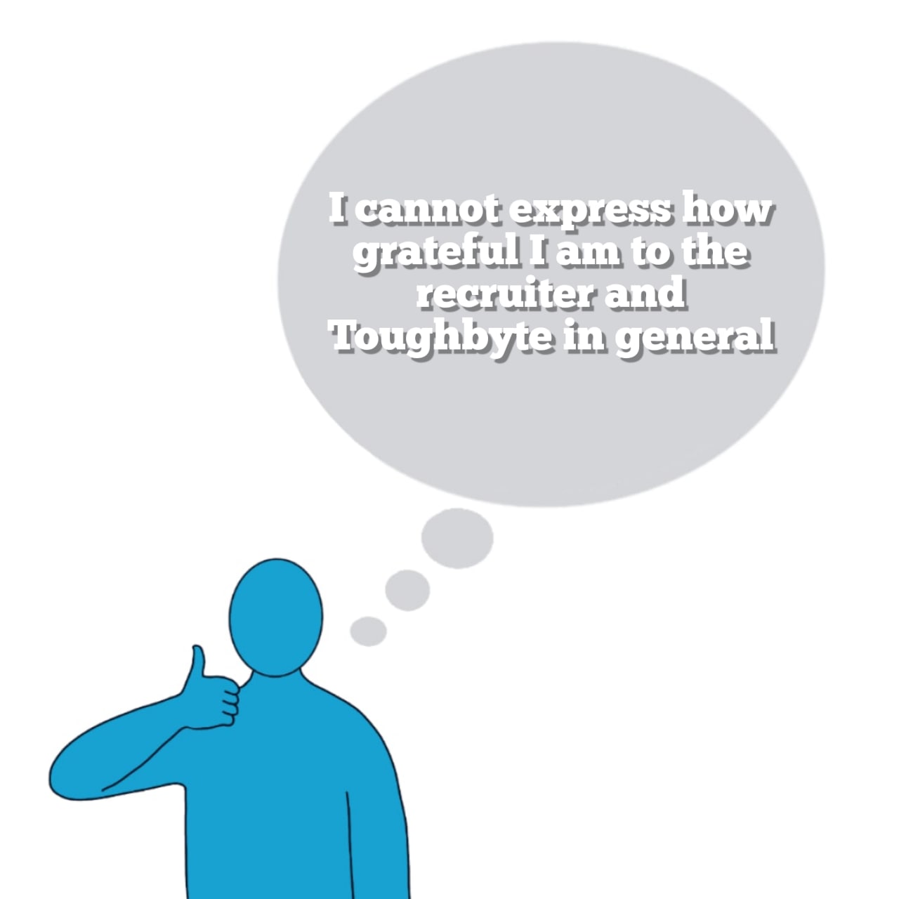 I was looking for new career opportunities when I was reached by Toughbyte with the best offer. I praise their proficiency with conducting the application and interview processes, and can't forget the support I was getting all along. I am super happy with my current employment and I wish everyone could be reached out and helped to like I once was.