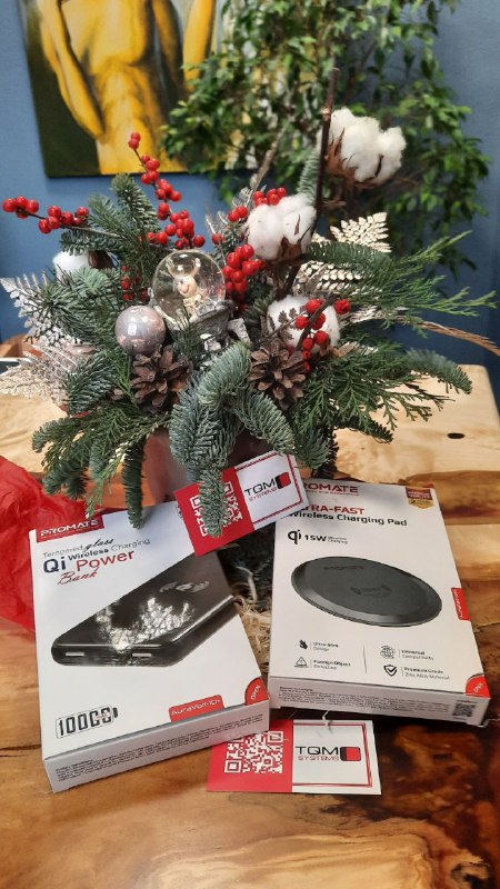 А вот и подарки, которые мы разыграем среди участников сегодняшнего вебинара! Пауэрбанк и беспроводная зарядка уже лежат под нашей офисной мини-елкой и ждут, кого же выберет рандомайзер.