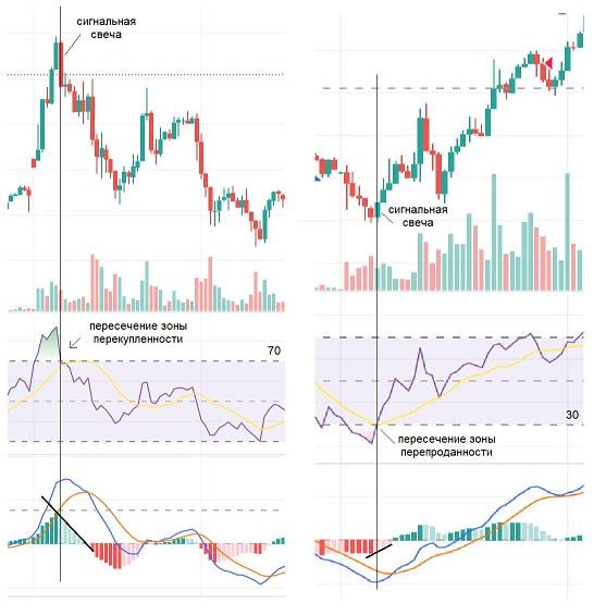 Данные сигналы очень сильные и с высокой долей вероятности позволяют очень точно ловить начало и окончание коррекционных или импульсных движений.