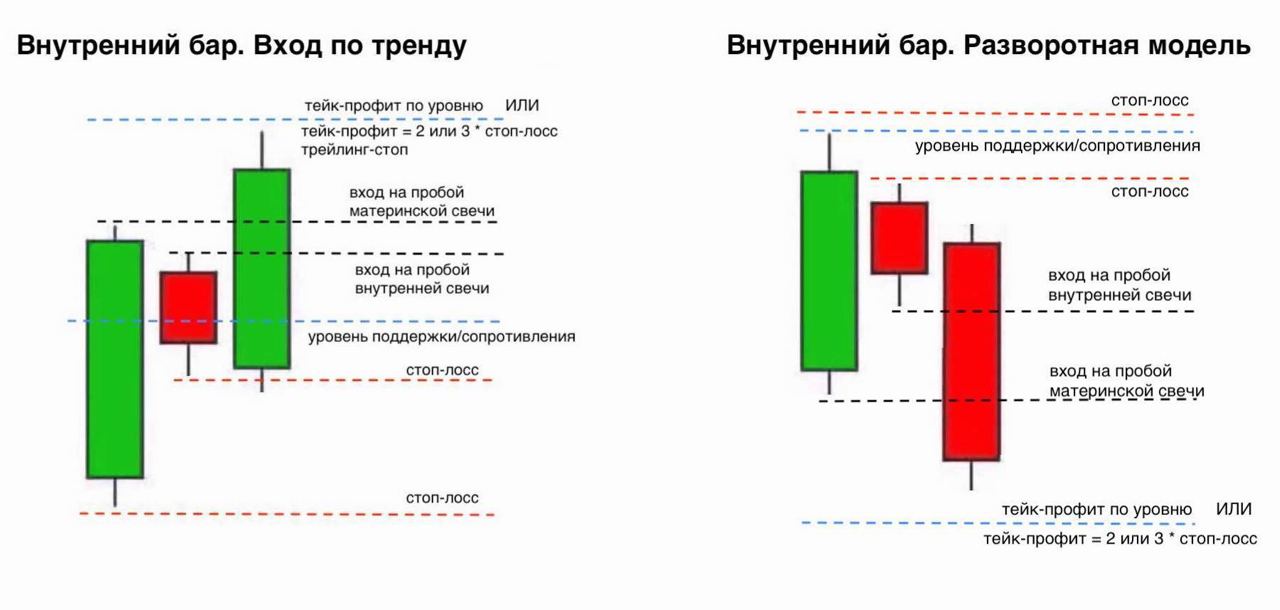🔹 2я свеча может открыться с гэпом вниз (медвежий тренд) или вверх (бычий), но не большим - это даст +1 к силе паттерна.
