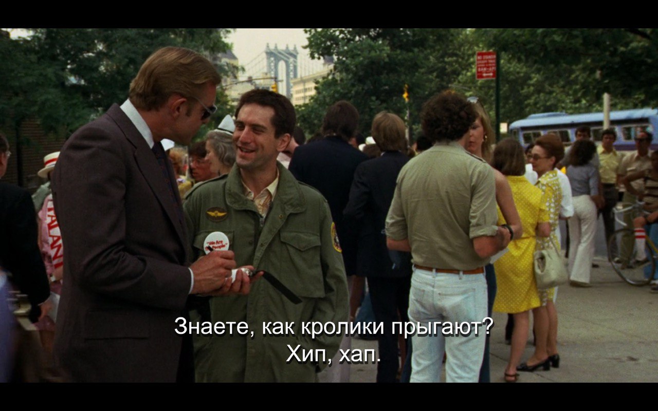 В последней трети «Таксист» из тревожного, но прекрасного миража о Вавилоне превращается в параноидально-эйфорический кошмар. Это часть обеспечила фильму любовь подростков всего мира, по сей день ставящих на аватарки знаменитый портрет, на котором улыбающийся Трэвис прикладывает к виску окровавленный палец, изображая выстрел в голову. Девушка, с которой у героя не получилось, очень точно назвала его «ходячим противоречием», "walking contradiction". Точность этого определения становится очевидна в кадре, где ветеран Вьетнама Трэвис в военной шинели стоит на политическим митинге с ирокезом на бритой голове. Он улыбается и хлопает лидеру партии, значок которой приколот к его куртке. Через минуту он попытается убить человека, чей лозунг носит на шинели, а незадолго до этого ногой разобьет телевизор, транслирующий мелодраму (жест, который повторят за ним сотни тысяч). Человек на митинге в военной шинели с ирокезом и 38-м кольтом в кармане — почти как московский мент, отпустивший старообрядческую бороду и принявшийся отстреливать депутатов Госдумы. «Ходячее противоречие» — совмещение несовместимого в рамках одной личности — культурный идеал многих подростков-2к19. Поэтому «Таксист», в финале мутирующий в контркультурный панк-манифест, остается актуальным молодежным фильмом и сегодня. Трэвис не левый и не правый, не военный и не хиппи. Трэвис — таксист, и он хочет наконец уже куда-то приехать. Сделать что-то. И в финале фильма он делает что-то, наконец осуществив социальную интеракцию, омыв ее кровью.
