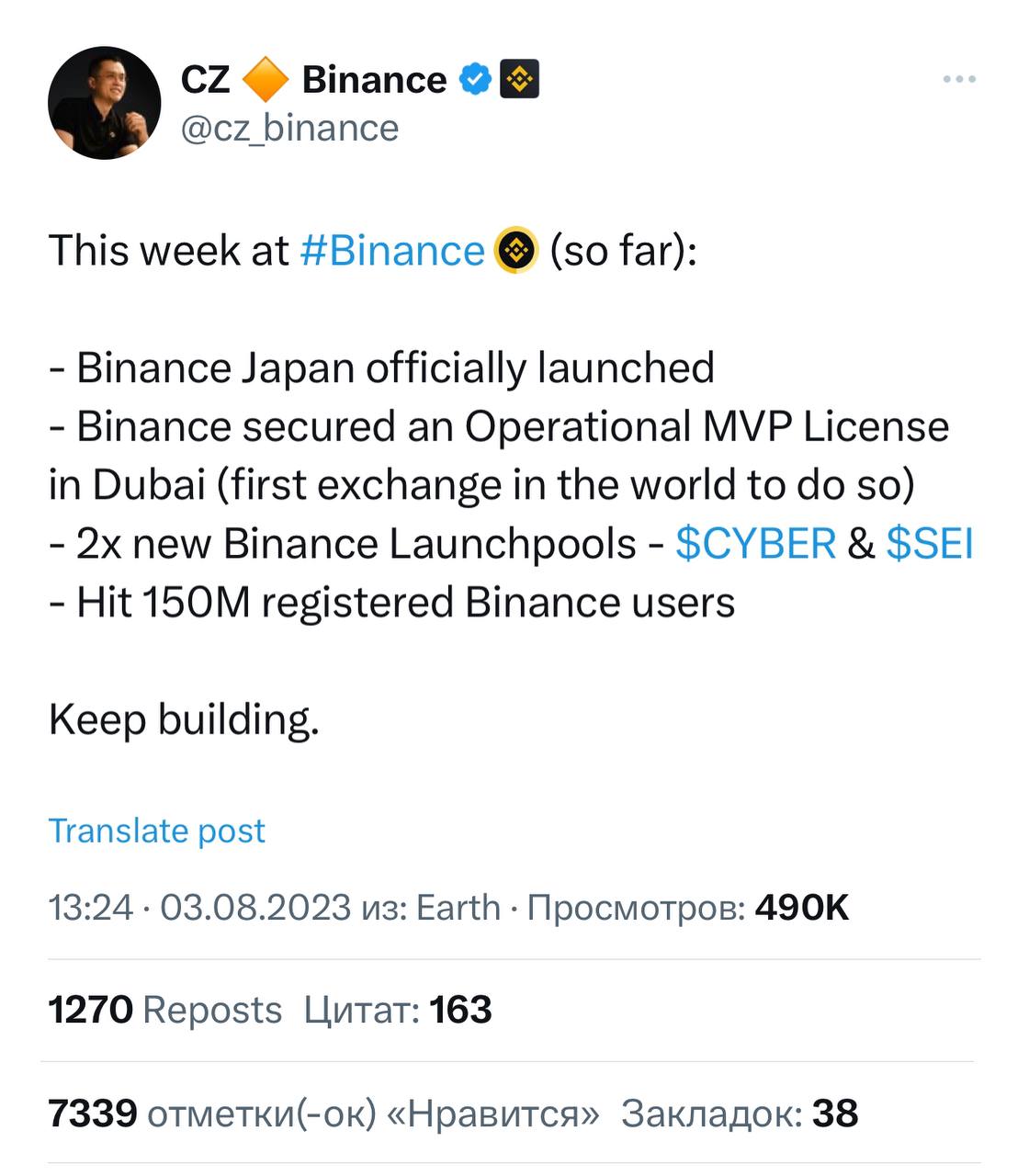 https://twitter.com/cz_binance/status/1687061963094814720?s=46&t=q4ZikHH7nQrrmh8OLcqBQw