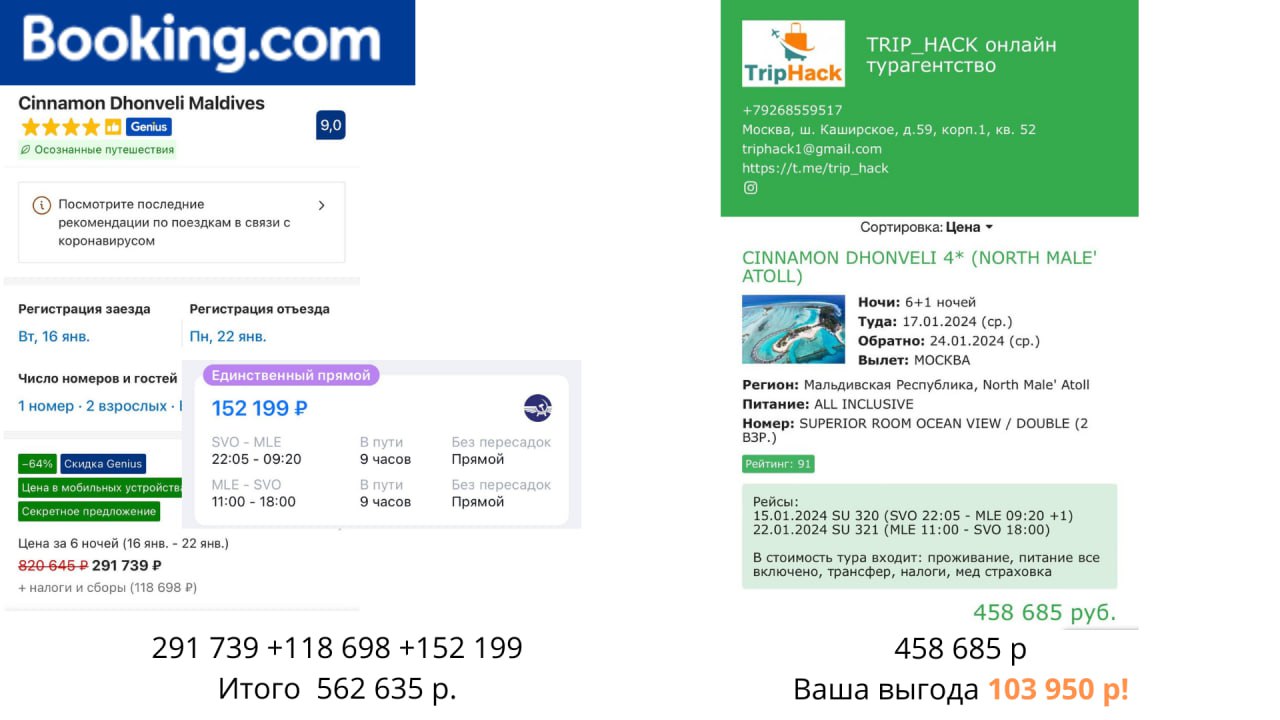 🔻Цена за проживание в отеле на букинге 292 739 р. (и мелким шрифтом еще обязательные 118 698 р.), билеты 152 199 р. Все вместе уже 562 635 р.